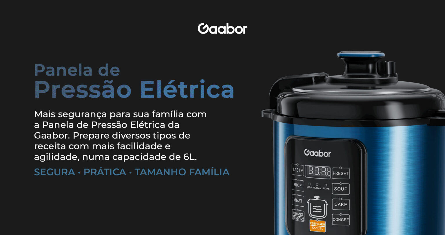 – 1x Panela de pressão elétrica Gaabor RC-S60E01AS;