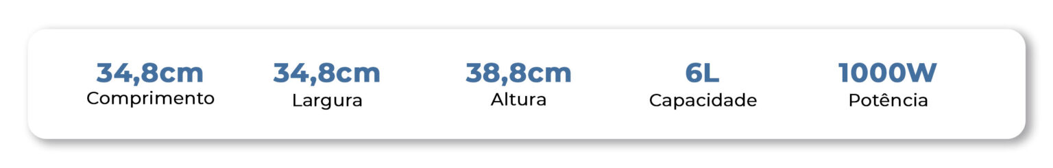 • Capacidade de 6L – Suficiente para uma família de 5 a 7 pessoas;