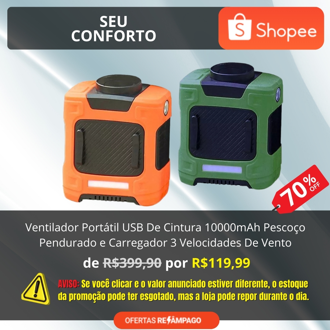 𝐕𝐞𝐧𝐭𝐢𝐥𝐚𝐝𝐨𝐫 𝐝𝐞 𝐂𝐢𝐧𝐭𝐮𝐫𝐚 – 𝐏𝐨𝐫𝐭𝐚́𝐭𝐢𝐥 𝐞 𝐌𝐮𝐥𝐭𝐢𝐟𝐮𝐧𝐜𝐢𝐨𝐧𝐚𝐥 Este 𝐯𝐞𝐧𝐭𝐢𝐥𝐚𝐝𝐨𝐫 𝐔𝐒𝐁 𝐩𝐨𝐫𝐭𝐚́𝐭𝐢𝐥 oferece a versatilidade de ser usado como 𝐯𝐞𝐧𝐭𝐢𝐥𝐚𝐝𝐨𝐫 𝐝𝐞 𝐜𝐢𝐧𝐭𝐮𝐫𝐚 ou 𝐯𝐞𝐧𝐭𝐢𝐥𝐚𝐝𝐨𝐫 𝐝𝐞 𝐜𝐨𝐥𝐚𝐫,, ideal para atividades ao ar livre e trabalho. Também funciona como banco de potência para carregar seus dispositivos móveis. 𝐓𝐞𝐦𝐩𝐨 𝐝𝐞 𝐓𝐫𝐚𝐛𝐚𝐥𝐡𝐨 𝐋𝐨𝐧𝐠𝐨: Com uma bateria de 10000mAh, o ventilador oferece até 26 horas de funcionamento, mantendo você fresco durante todo o dia. 𝐅𝐥𝐮𝐱𝐨 𝐝𝐞 𝐀𝐫 𝐅𝐨𝐫𝐭𝐞: Equipado com um motor atualizado, oferece 3 velocidades, com até 11 m/s de fluxo de ar forte, ideal para resfriamento rápido e eficiente. 𝐂𝐚𝐫𝐫𝐞𝐠𝐚𝐦𝐞𝐧𝐭𝐨 𝐅𝐥𝐞𝐱𝐢́𝐯𝐞𝐥: A bateria pode ser recarregada em 3-4 horas via carregador USB, garantindo praticidade em qualquer lugar. 𝐔𝐬𝐨 𝐌𝐮𝐥𝐭𝐢𝐟𝐮𝐧𝐜𝐢𝐨𝐧𝐚𝐥: Perfeito para casa, escritório, viagens, esportes e atividades ao ar livre. Também é uma excelente opção de presente para qualquer pessoa durante o verão. 𝐄𝐬𝐩𝐞𝐜𝐢𝐟𝐢𝐜𝐚𝐜̧𝐨̃𝐞𝐬 𝐓𝐞́𝐜𝐧𝐢𝐜𝐚𝐬: 𝐓𝐢𝐩𝐨 𝐝𝐞 𝐌𝐨𝐭𝐨𝐫: Rolamentos de esferas de motor sem escova (motor eficiente e silencioso) 𝐁𝐚𝐭𝐞𝐫𝐢𝐚: 10000mAh 𝐓𝐞𝐦𝐩𝐨 𝐝𝐞 𝐔𝐬𝐨: 8 a 26 horas (dependendo da velocidade) 𝐓𝐞𝐦𝐩𝐨 𝐝𝐞 𝐂𝐚𝐫𝐫𝐞𝐠𝐚𝐦𝐞𝐧𝐭𝐨: Aproximadamente 6 horas 𝐋𝐚𝐧𝐭𝐞𝐫𝐧𝐚 𝐋𝐄𝐃: 3W, 300 lúmens (para iluminar áreas escuras) 𝐋𝐮𝐳 𝐝𝐞 𝐀𝐝𝐯𝐞𝐫𝐭𝐞̂𝐧𝐜𝐢𝐚 𝐕𝐞𝐫𝐦𝐞𝐥𝐡𝐚 𝐞 𝐀𝐳𝐮𝐥: 1W (para maior visibilidade e segurança) 𝐄𝐧𝐭𝐫𝐚𝐝𝐚 𝐝𝐞 𝐂𝐚𝐫𝐫𝐞𝐠𝐚𝐦𝐞𝐧𝐭𝐨: 5V/2A Tipo-C 𝐒𝐚𝐢́𝐝𝐚 𝐝𝐞 𝐂𝐚𝐫𝐫𝐞𝐠𝐚𝐦𝐞𝐧𝐭𝐨: 5V/2.4A USB-A (para carregar outros dispositivos) 𝐌𝐚𝐭𝐞𝐫𝐢𝐚𝐥 𝐝𝐨 𝐏𝐫𝐨𝐝𝐮𝐭𝐨: ABS + Silicone (durável e resistente) 𝐓𝐚𝐦𝐚𝐧𝐡𝐨 𝐝𝐨 𝐏𝐫𝐨𝐝𝐮𝐭𝐨: 88 x 47 x 103 mm 𝐏𝐞𝐬𝐨 𝐝𝐨 𝐏𝐫𝐨𝐝𝐮𝐭𝐨: 360g (compacto e leve) 𝐄𝐬𝐭𝐞 𝐕𝐞𝐧𝐭𝐢𝐥𝐚𝐝𝐨𝐫 𝐝𝐞 𝐂𝐢𝐧𝐭𝐮𝐫𝐚 𝐨𝐟𝐞𝐫𝐞𝐜𝐞 𝐮𝐦𝐚 𝐜𝐨𝐦𝐛𝐢𝐧𝐚𝐜̧𝐚̃𝐨 𝐝𝐞 𝐯𝐞𝐧𝐭𝐢𝐥𝐚𝐜̧𝐚̃𝐨 𝐞𝐟𝐢𝐜𝐢𝐞𝐧𝐭𝐞, 𝐢𝐥𝐮𝐦𝐢𝐧𝐚𝐜̧𝐚̃𝐨 𝐋𝐄𝐃 𝐞 𝐜𝐚𝐫𝐫𝐞𝐠𝐚𝐦𝐞𝐧𝐭𝐨 𝐩𝐫𝐚́𝐭𝐢𝐜𝐨, 𝐢𝐝𝐞𝐚𝐥 𝐩𝐚𝐫𝐚 𝐚𝐭𝐢𝐯𝐢𝐝𝐚𝐝𝐞𝐬 𝐚𝐨 𝐚𝐫 𝐥𝐢𝐯𝐫𝐞, 𝐭𝐫𝐚𝐛𝐚𝐥𝐡𝐨 𝐨𝐮 𝐥𝐚𝐳𝐞𝐫.